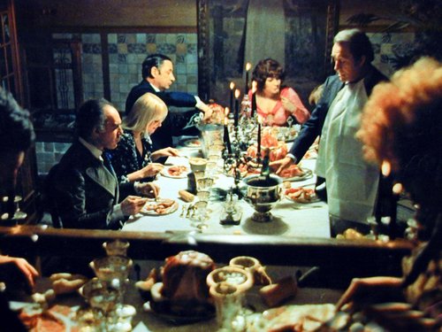 Yemek ve sofra, filmde bir zevk aracı olmaktan çıkıp, bir intihar eyleminin ritüeline dönüşüyor. Başlangıçta keyifli ve şık görünen sofra, film ilerledikçe alaycı bir tabloya evriliyor. Taze balıklar, istiridyeler, ördekler ve sayısız hamur işi… Hepsi birer ölüm aracına dönüşüyor. Ferreri, bu aşırı yeme eylemini, burjuva yaşamının anlamsızlığını ve ruhsal açlığını sembolize etmek için kullanır.