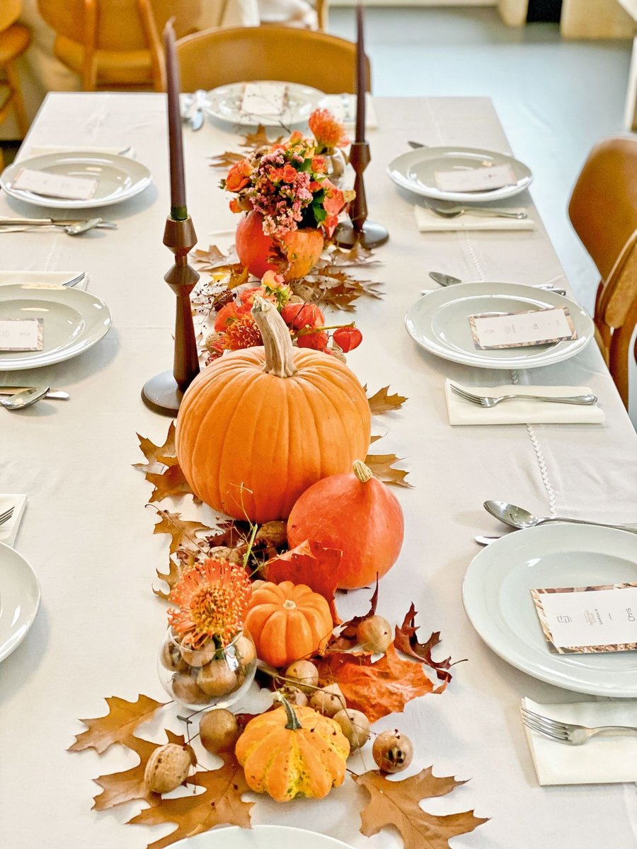 Sofralar için doğadan aldığı ilhamla doğal çiçek tasarımları hazırlayan Tuba Belgin Oskan, mevsim sonbahara döndüğünde ise doğanın zengin paletinden yararlanmak için sebze ve meyve kullanmayı da ihmal etmiyor.