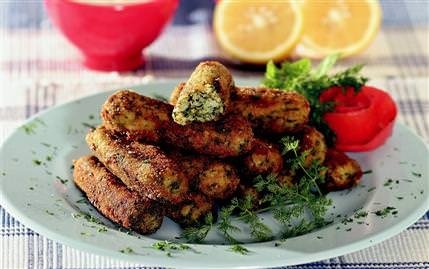 Pirinci 4 su bardağı suda haşlayıp süzün ve bol su ile çalkalayın. Daha sonra büyük bir kaba alıp üzerine, ıspanak, beyaz peynir, parmesan peyniri, dereotu, yumurta, sarmısak, rendelenmiş limon kabuğu, ince kıyılmış taze soğan, dereotu, tuz ve karabiberi ekleyip iyice yoğurun. Elinizi yıkayıp ıslakken harcı 18 parçaya ayırın. Ara sıra elinizi ıslatarak her parçaya kroket şekli verin. Birbirine değmeyecek şekilde bir tepsiye dizip oda sıcaklığında 30 dakika bekletin. Başka bir tepsiye yağlı kağıt yayıp, galeta ununu dökün. Çukur bir kapta yumurtaları çırpın. Kroketleri önce yumurtaya sonra galeta ununa bulayıp buzdolabında 30 dakika bekletin. Daha sonra kızgın sıvıyağda kızartın. Sosu için, yoğurt, kıyılmış nane, limon suyu, tuz ve karabiberi karıştırıp kroketle birlikte servis yapın.