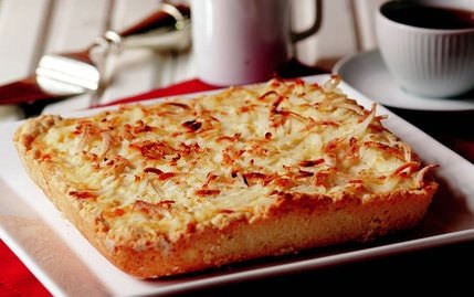 UN, tereyağı, tuz ve tozşekerin yarısını karıştırıp hamur yoğurun. 30x30 cm'lik kare bir kalıbı yağlayın. Hamuru kalıbın dibine ve kenarlarına yerleştirin. Dil peynirini rendeleyip hamurun üzerine yayın. Kalan tozşeker, labne peyniri, vanilya, krema ve hindistancevizini yumurtayla karıştırın. Karışımı dil peynirinin üzerine yayın. Önceden ısıtılmış 180 derece fırında üzeri pembeleşene kadar pişirin. Sıcakken dilimleyip vanilyalı dondurma ile servis yapın.