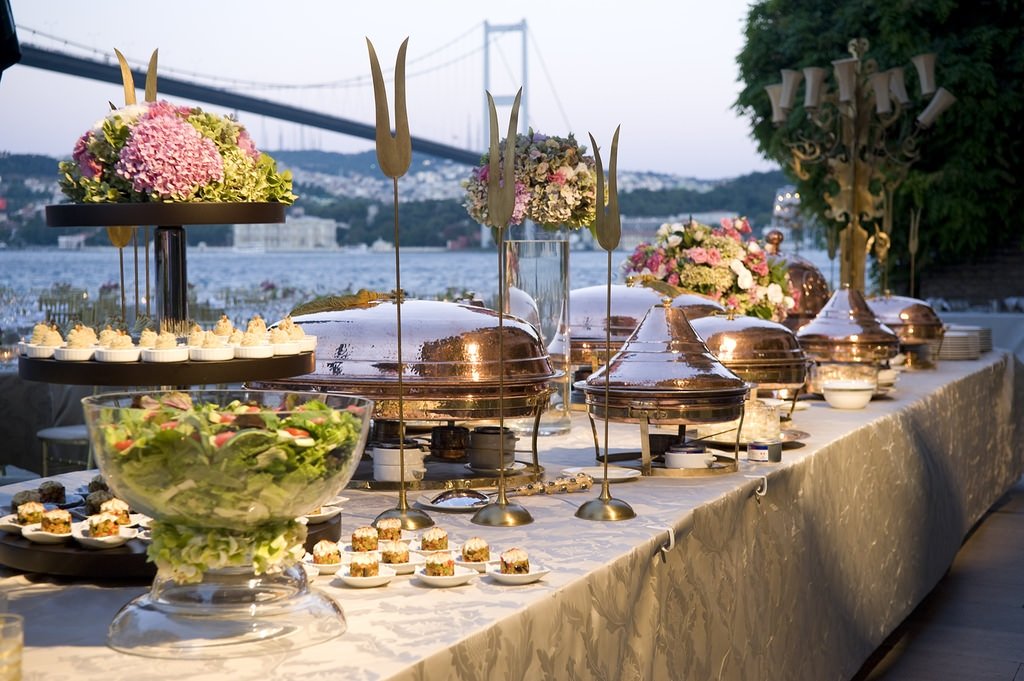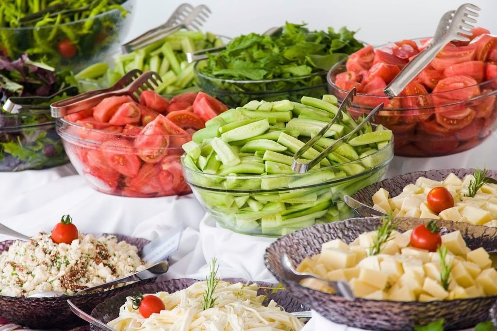 Tatlı büfesinde; Tel kadayıf, şekerpare, fırın sütlaç, peynir tatlısı, pişmaniye, cezerye ve mevsim meyveleri