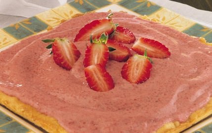 Hamur için, oda sıcaklığında beklettiğiniz margarini unla karıştırdıktan sonra tozşekeri ekleyin. Bu arada başka bir kap içinde çırptığınız yumurtaya, tuz ve vanilyayı ekledikten sonra ilk karışıma ilave edip bir hamur elde edin. Hamuru buzdolabında üstü örtülü olarak yarım saat dinlendirip hafifçe yağlanmış kare bir kalıba elinizle yayın. Önceden ısıtılmış 180 derece fırında üzeri pembeleşene kadar pişirin. Fırından çıkarıp soğumaya bırakın. Beyaz çikolatayı benmari usulü eritip kalıptan çıkarttığınız tartın üzerine eşit miktarda sürün. Diğer tarafta tartın üstü için süzme yoğurt, krema, tozşeker ve çileği blendırdan geçirin. Tartın üzerindeki beyaz çikolatanın üzerine sürün. Tane çilek ve nane yaprağıyla süsleyip servis yapın.