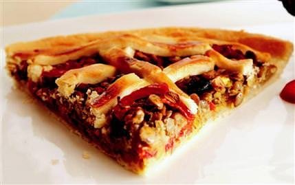 Öncelikle hamur için un, tereyağı ve tuzu karıştırın, elinizle kum gibi olana dek ufalayın. Soğuk suyu ekleyip, yoğurun. Streç filme sardığınız hamuru buzdolabında 1 saat dinlendirin. İç harç için ayıklanmış ve yıkanmış mercimeği 15 dakika haşlayıp süzün. Bir tavada tereyağını eritin. Kıyılmış soğan, taze soğan ve kırmızı biberi 5 dakika kavurun. İçine mercimek, tuz, kimyon, pulbiber ve karabiber ekleyin. 1-2 dakika daha kavurduktan sonra soğumaya bırakın. Soğuduktan sonra yumurta ve sütü ilave edip karıştırın. Tart hamurunu 26 cm çapındaki bir tart kalıbına, kenarlarını da kaplayacak şekilde yayın. Kenarlardan sarkan fazla hamurları üzerine kafes yapmak için ayırın. Hamurun üzerine mercimekli iç harcı boşaltın. Kalan hamurları uzun şeritler haline getirip, tartın üzerine kafes şekli verin. Önceden ısıtılmış 190 derece fırında 20-25 dakika pişirin.