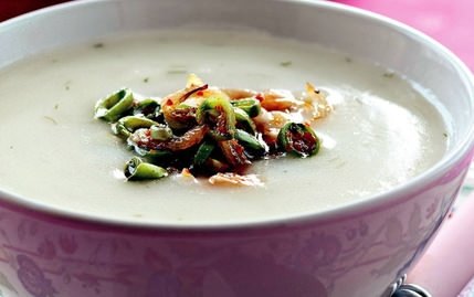 Baklayı temizleyip, yıkadıktan sonra ince kıyın. Tereyağını bir tencereye alıp küp doğranmış soğanı rengi dönene dek kavurun. Üzerine baklayı ekleyip birkaç dakika kavurun. Suyunu ve tuzunu ekleyip, 20 dakika pişirin. Yoğurt, yumurta sarısı ve unu bir kapta çırpın. Ocaktaki çorbanın altını iyice kısıp, karışımı azar azar ve karıştırarak üzerine ilave edin. Bir taşım kaynatıp, ocaktan alın. Üzeri için zeytinyağını bir tavaya alıp piyazlık doğranmış soğan ve ince kıyılmış baklayı ekleyin. Tuz ve pulbiber ilave edip bakla yumuşayana dek kavurun. Ocaktan alıp kıyılmış dereotu katın. Kaselere aldığınız çorbanın üzerine baklalı karışımı ekleyerek servis yapın.