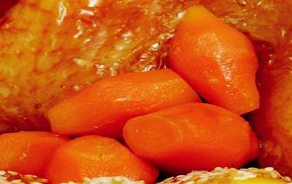 5 adet havucu bıçakla yuvarlak şekilde kesin. Tencereye alıp, üzerine su, tuz, tereyağı ve tozşeker ekleyin. Havuç suyunu tam olarak çekip, karamelize olana dek pişirin. Hindi ile birlikte servis yapın.