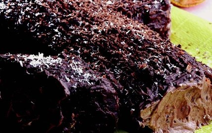 Hamur için gerekli tüm malzemeyi mikserle 2 dakika yavaş, 5 dakika hızlı devirde karıştırın. İki adet dikdörtgen kek kalıbına, ikiye böldüğünüz karışımı yayın. Önceden ısıtılmış 200 derece fırında 8-10 dakika pişirin. Bu arada crem patisserie için sütü kaynatın. Süt kaynadıktan sonra tozşekerle çırpılmış yumurta, un ve nişastayı, yavaş yavaş ve sürekli çırparak yedirin. Kaynayınca hemen ocaktan alın ve çikolatayı içine atarak erimesini sağlayın. Soğuduktan sonra telle çırpın. Kekleri enlemesine ikiye bölün ve crem patisserie'yi sürün. İlk keki uzun bir servis tabağına alın. İkinci kekten verev parçalar keserek, budak şekli verin. Kestiğiniz parçaları rulonun yanlarına yerleştirip ağaç görünümü verin. Üzerine erimiş çikolata sürün. Çatal ile üzerine ağaç kabuğu şekli verin. Rendelenmiş çikolata ve hindistancevizi ile süsleyin. Buzdolabında 1 saat kadar bekletip dilimleyerek servis yapın.