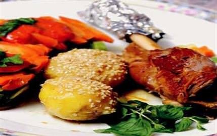 5 adet patates, 1 diş sarmısak, 1’er çorba kaşığı hardal ve bal, 1 tatlı kaşığı tuz, susam