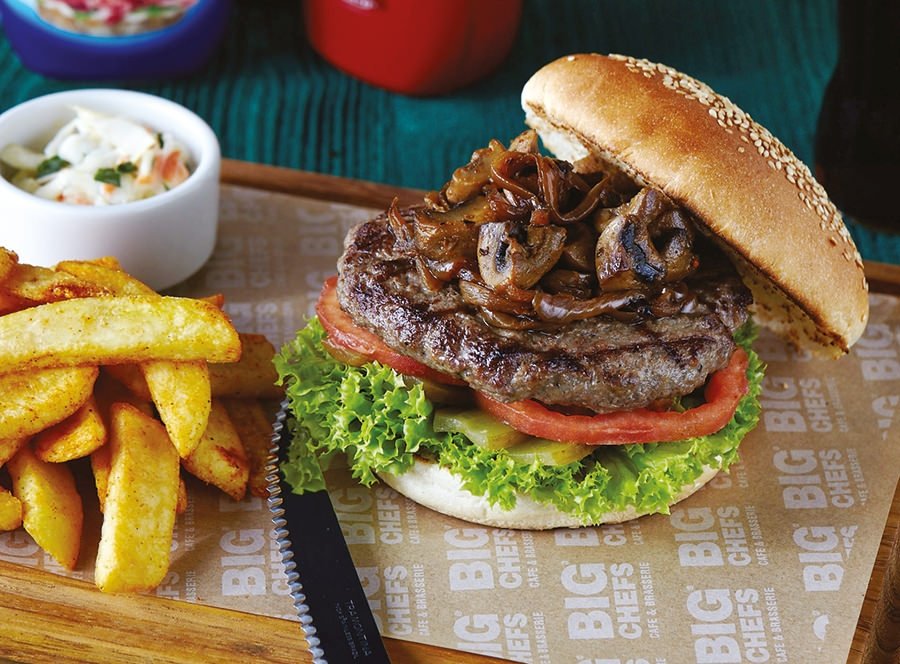 Big Big Burger: Az yağlı kıymaya çok az tereyağı eklenip makineden çekilen ve sonrasında sadece tuz, karabiberle tatlandırılıp, yumuşacık, orta pişmiş olarak hazırlanan Big Big Burger’in köftesi, isteğe göre fazla ya da daha az pişirilebiliyor. Big Chefs, dilimlenmiş halka domates, kornişon turşu, marul ve karamelize soğanlı mantarla hazırladığı Big Big Burger’in susamlı, hafif tatlı, yumuşacık olan hamburger ekmeğinin sos ve köfteden ıslanıp hamur olmaması için servis sırasında ekmek içlerini kızartmayı da ihmal etmiyor. Big Big Burger’in yanında patates kızartması ve “Coleslaw recipe” adıyla bilinen havuçlu lahana salatası ikram ediliyor. Fiyatı 28 TL. (www.bigchefs.com.tr)