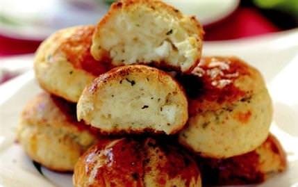 Yoğurma kabına kaymak, sıvıyağ, peynir, yoğurt, yumurta, nane ve tuzu alın. Kabartma tozu ve yavaşça unu ilave ederek yumuşak bir hamur elde edene kadar yoğurun. Hamurdan yeşil erik büyüklüğünde parçalar koparın. Avucunuzda yuvarlayıp şekil verin ve yağlanmış fırın tepsisine dizin. Üzerlerine yumurta sarısı sürün. Önceden ısıtılmış 180 derece fırında üzerleri pembeleşinceye dek pişirin. Ilık olarak servis yapın.