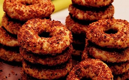 Margarin, yumurta akı ve 1 su bardağı kelle peynirini derin bir kaba alın. Üzerine unu eleyin. Karbonat ve mahlebi ilave edin. Tüm malzemenin karışması için iyice yoğurun. Hamurdan ceviz büyüklüğünde parçalar koparın. Bu parçaları iki avucunuzun içinde yuvarlayarak şerit şekli verin. Şeridin uçlarını birleştirin. Önce yumurta akına, daha sonra susama bulayıp önceden ısıtılmış 180 derece fırında pişirin.