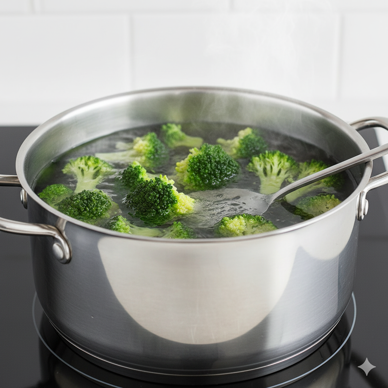 - Haşlama: Kaynayan suya brokoli parçalarını atın. Su tekrar kaynamaya başladıktan sonra 2-3 dakika kadar haşlayın.