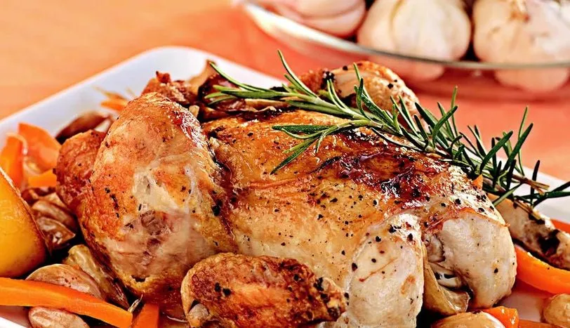 TAVUĞU yıkayıp kurulayın. Üzerine ve içine karabiberle tuz sürün. Zeytinyağını geniş bir tavaya alıp, tavuğun her tarafı altın rengi olana dek çevirerek kızartın. Tavuğu tavadan alıp, aynı yağın içine kabuğu soyulmamış sarmısakları ve temizlenip sekize bölünmüş soğanı katın. 7-8 dakika birlikte sote edip tavadan alın. Yine aynı tavada iri jülyen doğranmış havucu da sote edin. Bir fırın torbasına unu koyup her tarafına yayılması için silkeleyin. İçine tavuk, sarmısaklı soğan, havuç, tuz, karabiber, kekik, biberiye ve ikiye bölünmüş limonu koyun. Torbanın ağzını kapatın. Üzerine çatalla delikler açın ve bir fırın tepsisine yerleştirin. Önceden ısıtılmış 190 derece fırında 1 saat 15 dakika pişirin.