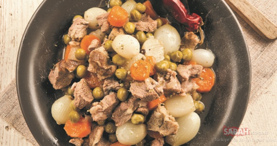 Eti yıkayıp suyunu süzün. Kızgın tencerede karıştırmadan 3-4 dakika pişirin. Zeytinyağı ve ayçicek yağı ekleyin. Üzerine halka doğranmış havuç ve kabukları soyulmuş arpacık soğanları katıp 5-6 dakika kavurun.