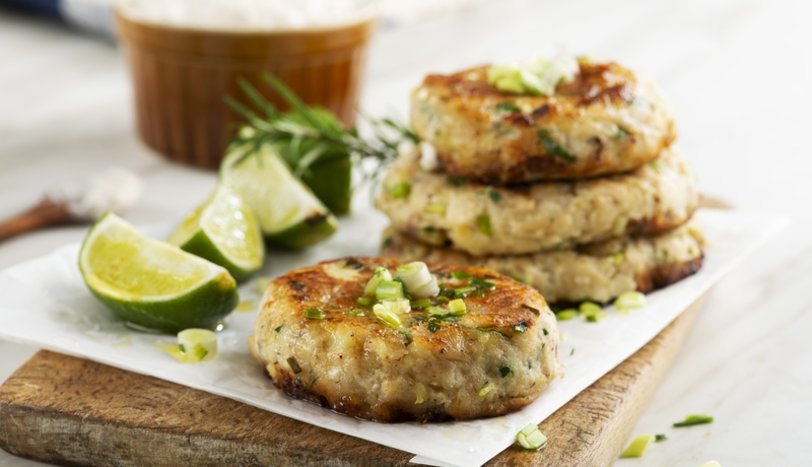 Harcı 8 parçaya bölüp elinizde yassı, yuvarlak köfteler hazırlayın. Unlanmış tepsiye aralıklı olarak yerleştirip 15 dakika derin dondurucuda dinlendirin.