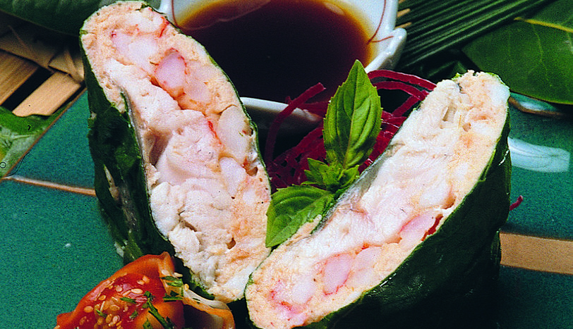 Somon balığını blenderdan geçirin. Tuz, krema ve karabiberi ekleyerek, iyice karıştırın. Bu karışıma karidesleri de ekleyin. Fileto levreklerin üzerine bu karışımı sürün. Her bir pazı yaprağının üzerine birer fileto koyarak rulo şeklinde sarın.
