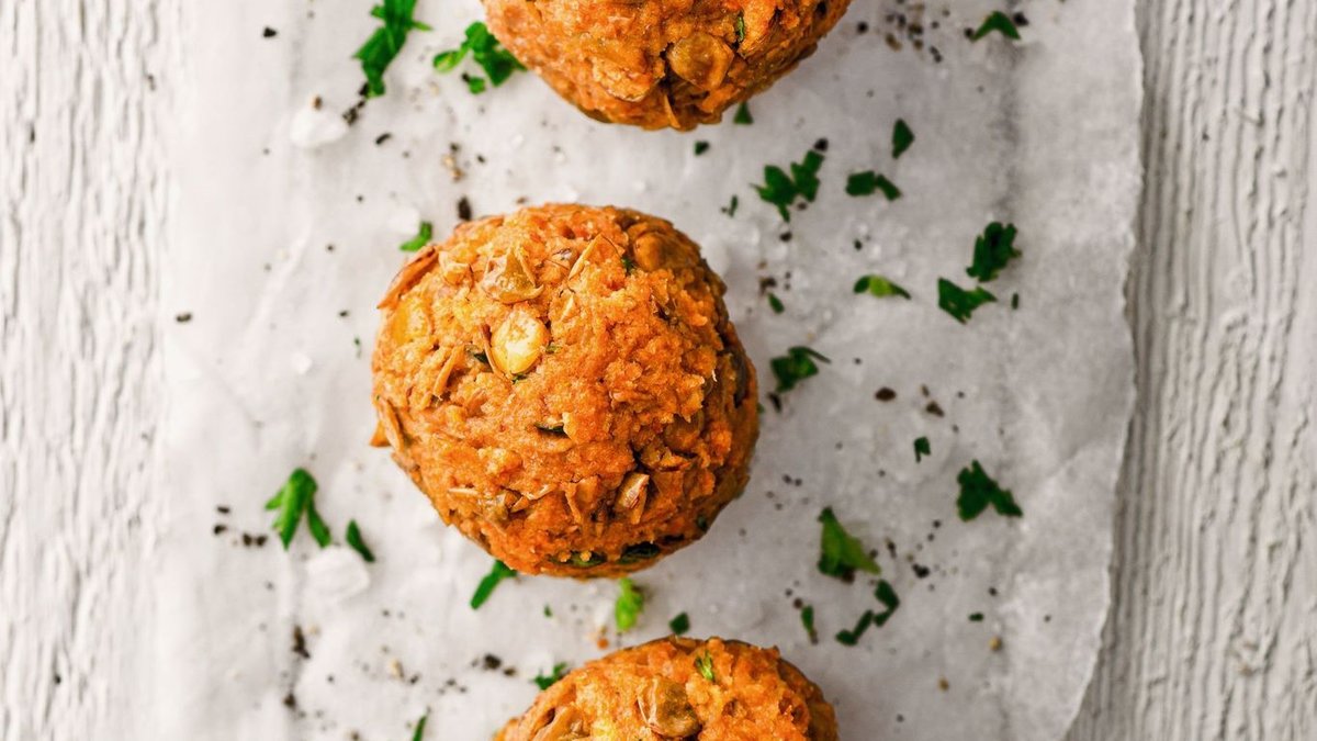 Hazırladığınız harçtan ceviz büyüklüğünde parçalar alarak köfte şekli verin. Köfteleri buzdolabında 30 dakika dinlendirin. Fırın tepsisine yerleştirin. Önceden ısıtılmış 180 derece fırında hafif kızarana kadar pişirin. Kıyılmış maydanoz serpin. Soğuk veya ılık olarak servis yapın.
