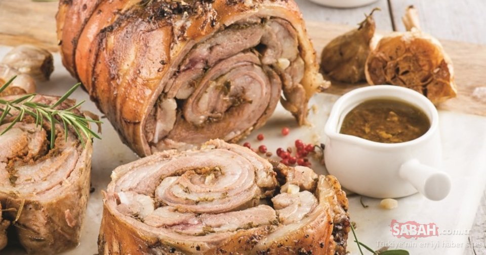 Bir adet döşü düz olarak önünüze alın, üzerine biberiyeli karışımı yayıp, ikinci döşü üzerine kapatın ve eninden sıkıca rulo şeklinde sarın. Fırın kabına alıp, mutfak ipi ile birkaç yerinden bağlayın.