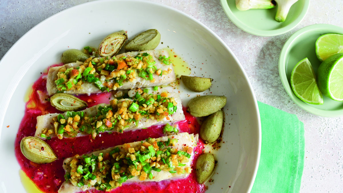 Böğürtlen ve Frenküzümü Soslu Mezgit