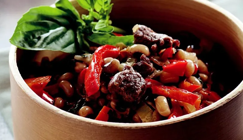 Börülceyi akşamdan ıslatın. Ertesi gün suyunu süzüp, üzerini dört parmak geçecek kadar su ekleyin ve haşlayın. Ayrı bir yerde eti sıvı yağda suyunu salıp yeniden çekene dek kavurun. Doğranmış soğan, havuç, kıyılmış biber ve sarımsak ekleyip 5 dakika daha kavurun. Üzerine suyu ile birlikte börülceyi ilave edin. Et yumuşayana dek pişmeye bırakın. Toz kırmızıbiber, kişniş, fesleğen ve karabiber ekleyin. Tuzunu ayarlayıp bir taşım daha pişirin.