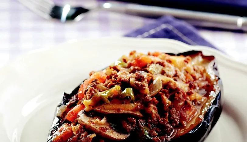 PATLICANLARIN saplarını kesmeden ve soymadan küçük yeşil yapraklarını koparın. Daha sonra sapları ile birlikte ortadan ikiye bölün. Kesilmiş yüzlerine tuz serpin ve yarım saat bekletin. Yıkayıp, kurulayın. Kızgın yağda önlü arkalı kızartın. İçlerini kaşıkla çıkarın. Çıkan parçaları küçük doğrayın. Zeytinyağını bir tavaya alıp, kıyma ve piyazlık doğranmış soğanı, soğanın rengi dönene dek kavurun. Üzerine doğranmış mantar, biber ve domates ekleyip kavurun. Doğradığınız patlıcanları, tuz ve karabiberi de katın. Birkaç dakika daha kavurup ocaktan alın. Harcı patlıcanların içine doldurun ve bir fırın tepsisine yerleştirin. 1 çorba kaşığı salçayı suyla açın ve tepsiye dökün. Önceden ısıtılmış 180 derece fırında 15-20 dakika pişirin.AŞÇININ NOTUYemeği kuşbaşı etle de hazırlayabilirsiniz.