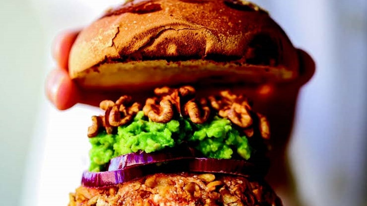 Hamburger ekmeğini ızgarada ısıtın. Domates ve soğanı halka dilimleyin. Avokadoyu ezip püre haline getirin. Tüm malzemeyi ve hazırladığınız köfteyi istediğiniz sıralama ile en üste ceviz gelecek şekilde yerleştirin. Servis yapın.
