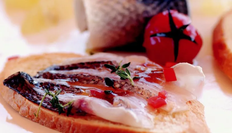 100 gram levrek filetonun kılçıklarını temizleyin. Levrek filetolarını, limon suyu, sızma zeytinyağı, deniz tuzu, balzamik sirke ile marine edin. 24 saat buzdolabında bekletin. Levrek filetosunun bazılarını rulo yapıp, bazılarını düz bir şekilde mısır ekmeği dilimlerinin üzerine koyun. Kiraz domateslerle süsleyerek servis yapın.