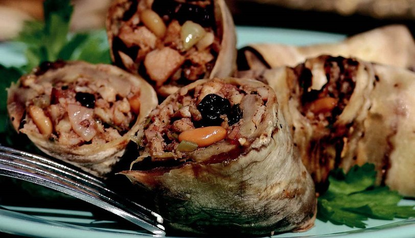 Akdeniz mutfağının zengin tatlarını sofranıza getiren Deniz Ürünlü Patlıcan Sarma, deniz ürünlerinin ve patlıcanın mükemmel uyumunu sunuyor.