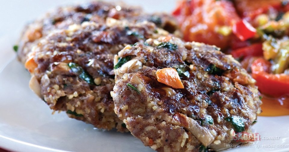 Köfte için bulguru derin bir kapta kaynar su ile ıslatın. Suyunu çekince kıyma, rendelenmiş soğan, toz şeker, kuru biberiye, kişniş, kimyon, karabiber, pul biber ve tuzu ekleyip, yoğurun. Kıyılmış mantar ve havucu ayçicek yağı ile birlikte bir tavada soteleyin. Soğuduktan sonra kıymanın içine katın ve tüm malzemeyi iyice yoğurun. 2 saat buzdolabında bekletin. İri yumurta büyüklüğünde parçalar koparın ve avucunuzun içinde yuvarlayarak bastırıp, köfteler hazırlayın. Izgarada pişirin ve domates sos ile birlikte sıcak servis yapın.