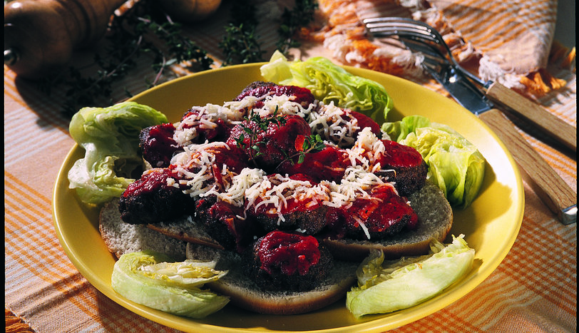 BİR kabın içinde kıyma, köfte harcı, su ve ezilmiş sarmısakları iyice yoğurup, ceviz büyüklüğünde parçalar koparın. Elle yuvarlayıp köfteler yapın. Az yağda arkalı önlü kızartın. Servis tabağına dizdiğiniz ekmeklerin üzerine köfteleri yerleştirin. Tavadaki yağı döküp, aynı tavada 1 çay bardağı zeytinyağı, salça, su, ezilmiş sarmısak, tuz, karabiber ve kekiği, sos kıvamına gelinceye dek pişirin. Sosu köftelerin üzerine gezdirin. Son olarak rendelenmiş kaşar peyniri serpip, servis yapın.