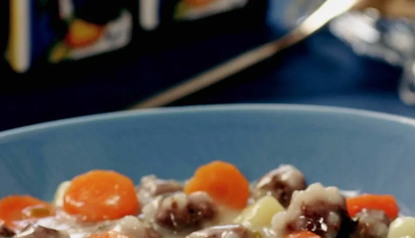 Köfteleri hazırlamak için, soğanı rendeleyin, maydanozları incecik kıyın. Un hariç kalan tüm köfte malzemesini karıştırıp iyice yoğurun. Hamurdan fındık büyüklüğünde köfteler hazırlayın. Un döktüğünüz bir tepsiye köfteri koyup sallayın ve köftelerin her tarafını una bulayın (böylece yapışmalarını önlemiş olursunuz). Derin bir tencereye, doğradığınız havuç ve patatesleri koyun. Üzerine su, 2 çorba kaşığısıvıyağ, tuz ve doğranmış maydanoz saplarını da ekleyip pişmeye bırakın. Havuçlar yumuşayınca köfteleri detencereye ekleyip pirinçleri yumuşayana kadar pişirin. Limon suyu, tuz, un, ve 1 çorba kaşığı suyu ayrı bir kapta iyice çırpın. Yavaş yavaş köftelere ekleyin. 5 dakika daha pişirip ocaktan alın.