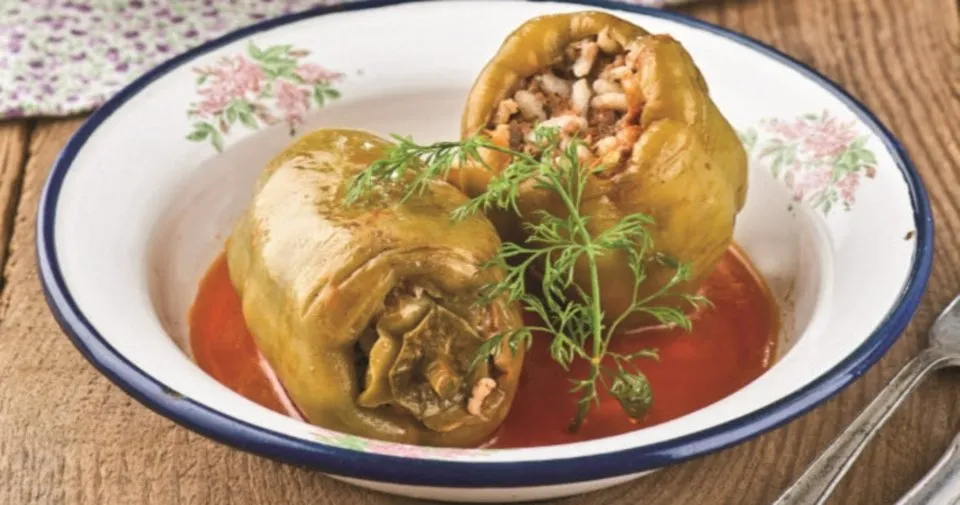 İç malzemenin tümünü iyice karıştırıp kenara alın. Biberlerin üzerilerinden kapak kesip, kapakları sonra kullanmak üzere ayırın. Harcı biberlerin içlerine çok sıkı olmayacak şekilde doldurun ve tencereye dik şekilde yan yana yerleştirin. Üzerlerine kapaklarını koyun. Ayrı bir yerde salça, sıvı yağ ve sıcak suyu çırpıp tencereye ilave edin ve kapağını kapatıp, kaynadıktan sonra kısık ateşte 25 dakika pişirin. Pişirme sırasında ara sıra suyunu kontrol edin. Sıcak olarak servis yapın.
