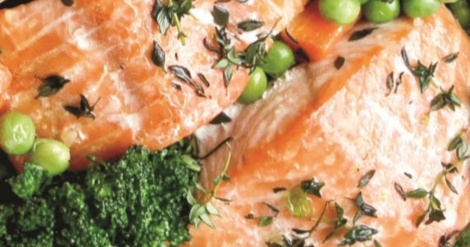 5-6 adet bebek patatesin kabuklarını temiz bir bulaşık teliyle ovarak temizleyin. Yıkadıktan sonra kaynar suda 10-12 dakika kadar haşlayın ve tencereden alıp soğuk suya koyun. Patatesleri haşladığınız suda, iri parçalar halinde doğranmış 1 adet havuç, çiçeklerine ayrılmış 200 gram brokoli ve 100 gram ayıklanmış bezelyeyi beraber haşlayın. Daha sonra soğuk suya alın. Arpacık soğanları temizleyin. 2 parça (yaklaşık 250 gram) somon filetoyu 2 çorba kaşığı zeytinyağı, 3-4 dal taze kekik ve 1 tutam tuzla iyice ovun. Pişirme kağıdı serdiğiniz orta boy bir fırın kabına yerleştirin. İyice süzüp kuruladıktan sonra derin bir kabın içinde 1 kahve fincanı zeytinyağı, 1 çay kaşığı tuz ve 1 çay kaşığı karabiberle iyice karıştırdığınız sebzeleri fırın kabına ekleyin. Önceden ısıtılmış 200 derece fırında yaklaşık 20-25 dakika pişirin.