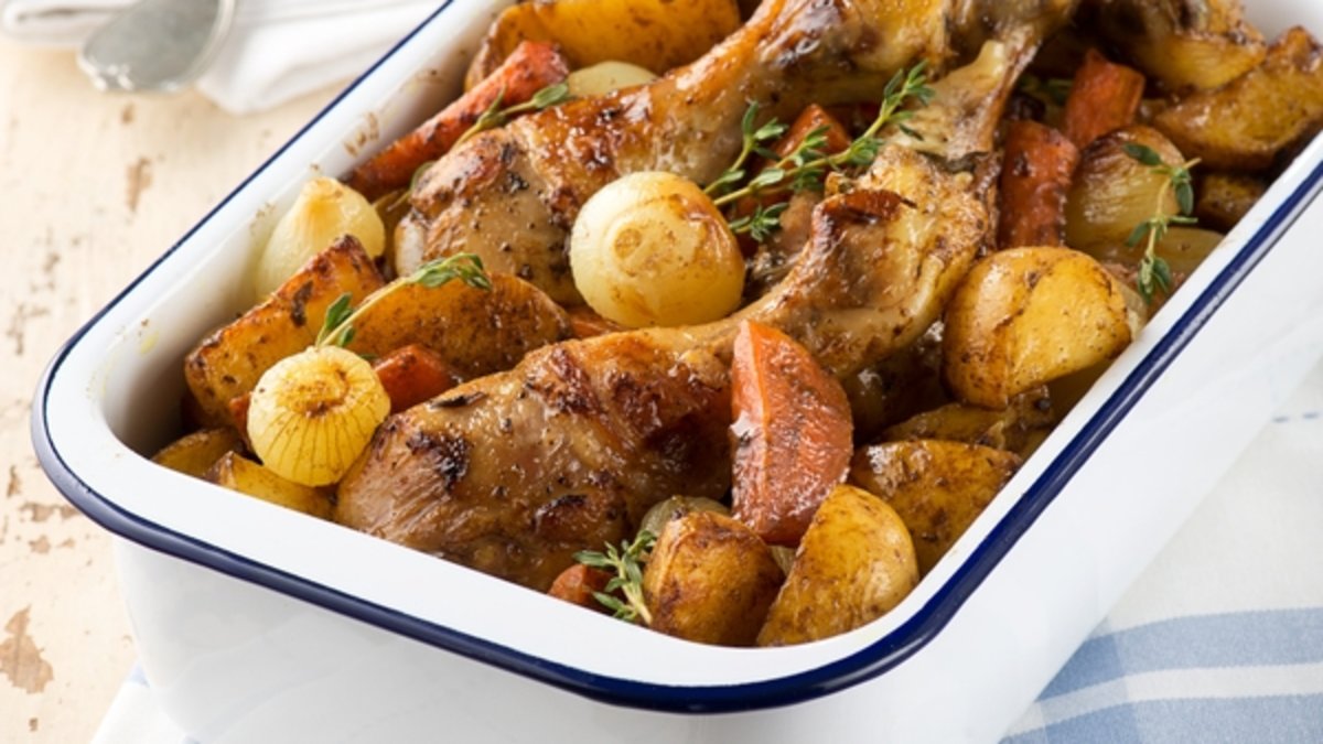 Önceden ısıtılmış 200 derece fırında 40 dakika pişirin. Sürenin sonunda kabın üzerinden pişirme kağıdı ve folyoyu alıp 15-20 dakika daha pişirip servis yapın.