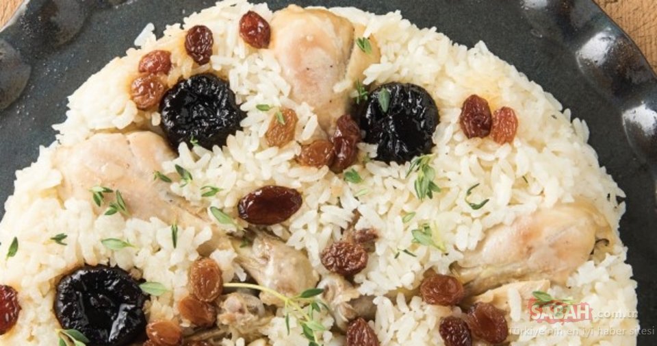 Daha sonra suyunu süzdürüp tencereye alın ve tereyağı zeytinyağı karışımında şeffaflaşana dek kavurun. Orta boy kelepçeli kalıbın altına tavuk butlarını yerleştirip, kuru erik ve kuru üzümleri serpiştirin.