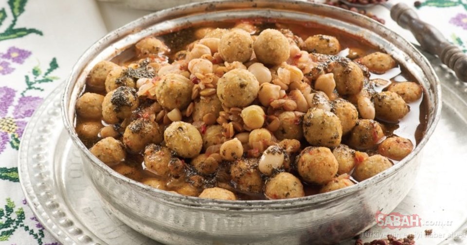 Kaynamaya başlayınca köfteleri ilave edip 5 dakika pişirin. Haşlanmış nohut, kuru fasulye ve mercimek ekleyip 10 dakika daha pişirin. Üzerine tereyağında kızdırılmış nane ve toz kırmızıbiber gezdirin. Sumak serpip servis yapın.