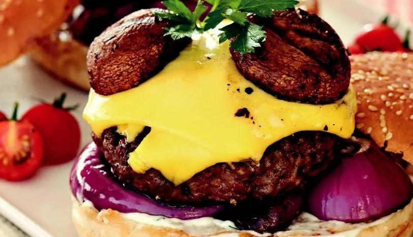 Hamburger köftesi için kıymayı bir kaba alıp üzerine karabiber ve tuz ilave edin. Yoğurup elinizle şekillendirin. Soğan ve mantarları hafifçe yağlayıp, barbekü ızgarasının düşük ateş bölümüne yerleştirin ve çevirerek pişirin. Hazırladığınız köftenin her iki tarafına hafifçe zeytinyağı sürün. Köfteyi barbekü ızgarasının orta ateş bölümüne saat 5 yönünde yerleştirip, 3 dakika pişirin. Köftenin aynı yüzünü saat 7 yönüne çevirip, 3 dakika daha pişirin. Daha sonra köftenin diğer tarafını çevirip saat 5 yönünde ızgaraya yerleştirin ve 3 dakika pişirin. Bu yüzü de saat 7 yönüne çevirip 1 dakika daha pişirin. Üzerine çapraz olarak iki dilim cheddar peyniri koyun. 2 dakika daha pişirip ocaktan alın.Köftenin pişmesine yakın hamburger ekmeğinin iç yüzeyine hafifçe zeytinyağı sürün ve ızgarada 1-2 dakika pişirin. Izgaranın üst rafına alın. Aioli için bütün malzemeyi bir kaba alıp karıştırın. Hamburger ekmeğinin her iki yüzüne de sos sürün. Alt dilimi düz bir zemine alıp, üzerine soğan dilimlerini koyun. Köfteyi peynirli kısmı yukarıda kalacak şekilde yerleştirin. Mantarları ilave edin. Ekmeğin üst parçasını kapatıp servis yapın