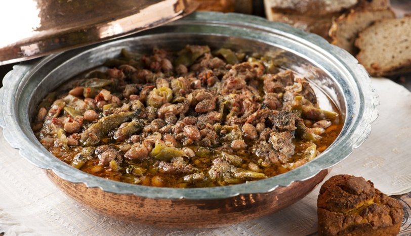 Etin üzerine gelecek kadar su ekleyip 15- 20 dakika pişirin. Taze fasulye, barbunya, ince doğranmış soğan ve domatesi ilave ederek pişirmeye devam edin.
