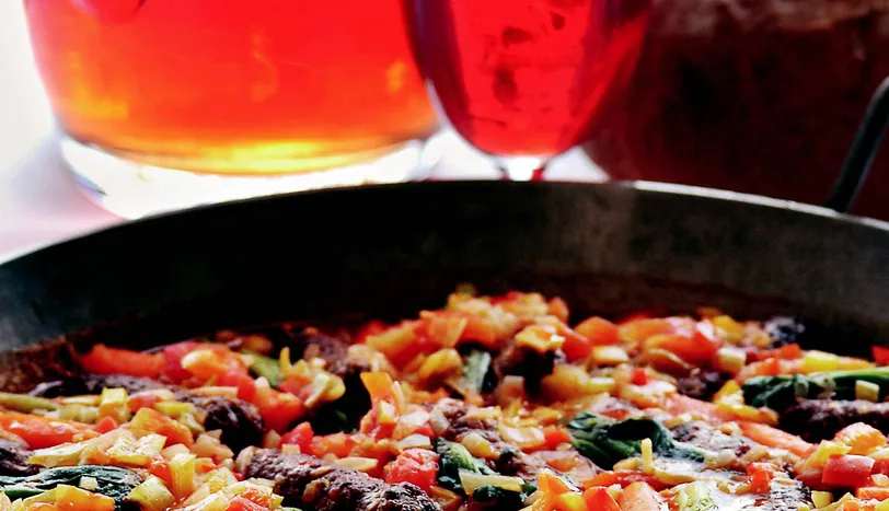 Sos için tereyağı eritip, zeytinyağı ekleyin. Kıyılmış soğanı koyup kavurun ve küp doğranmış biberi ekleyin. Küp doğranmış domates, un ve salçayı ilave edin. 1-2 dakika daha kavurduktan sonra suyu ekleyin. 5 dakika daha kaynatın. Tuzunu ayarlayıp kenara alın. Köfte için iki defa çekilmiş etleri derin bir kaba alın. Islatılıp iyice sıkılmış ekmek, yumurta, rendelenmiş soğan ve sarmısak, kıyılmış maydanozu ekleyin. Yeteri kadar pulbiber, tuz, karabiber ve kimyon kattıktan sonra iyice yoğurun. Hazırladığınız harçtan ceviz büyüklüğünde parçalar koparın. Her bir parçayı parmak şeklinde yuvarlayın. Hafifçe yağlanmış fırın tepsisine veya ısıya dayanıklı cam tepsiye dizin. Önceden ısıtılmış 180 derece fırında 15 dakika pişirin. Diğer tarafta kabuğu soyulmuş havuçları 3-4 dakika haşlayıp buzlu suya çıkartın. Ispanak köklerini başka bir tencerede1 dakika kadar haşlayıp buzlu suya çıkartın. Haşlanmış havuç ve ıspanak köklerini kızaran köftelerin arasınadizin. Üzerine domatesli sosu gezdirin. Fırında 15 dakika daha pişirip, çıkarın. Sıcak olarak servis yapın.