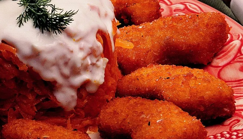 Galeta unu, köri, tuz ve karabiberi bir kapta karıştırın. Tavukları galetalı karışıma bulayın. Kızdırılmış sıvıyağda kızartın. Havuçları rendeleyip, sıvıyağda kavurun. Sarmısakları ezip, yoğurtla karıştırın. Kavurduğunuz havuçları küçük, derin bir kaba koyup üzerini düzeltin. Ardından servis tabağına havuçlu kabı ters çevirerek, üzerine sarmısaklı yoğurdu gezdirin. Tabağın etrafında kalan boşluklara, kızarttığınız tavuk paneleri yerleştirip servis yapın.AŞÇININ NOTUKendiniz hazırlamak yerine tabakta satılan hazır tavuk pane de kullanabilirsiniz.