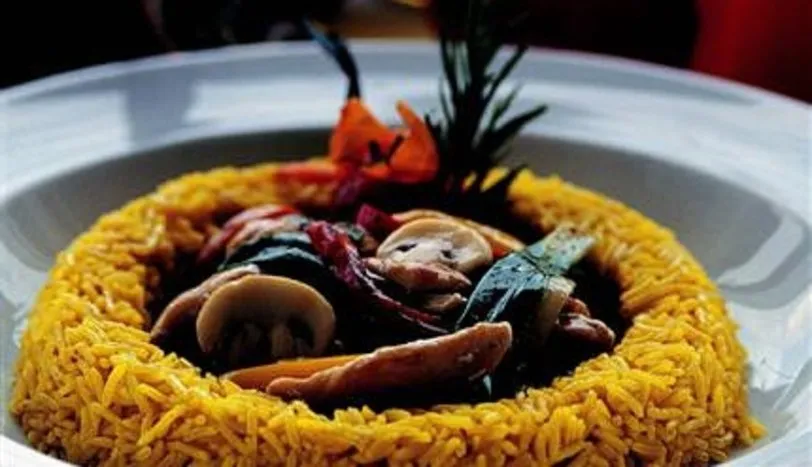 Kemikleri çıkartılmış, deri ve sinirli kısımları ayıklanmış hindi butlarını ince ve uzunca doğrayın. Tavaya mısırözü yağının yarısını alıp ısıtın. Hindi etlerini tavaya alıp pembeleşinceye kadar kavurun. Bir süzgece alıp yağını ve suyunu süzün. Mantar, soğan, taze soğan ve süs biberlerini jülyen doğrayın. Başka bir tavaya mısır özü yağının kalan yarısını alıp ısıtın. Tavaya sırasıyla soğanları, süs biberlerini ve mantarları alıp soteleyin. Daha önceden kavrulan hindi etleri ile sebzeleri karıştırın. Safranlı pilav ve sos ile birlikte servis yapın.