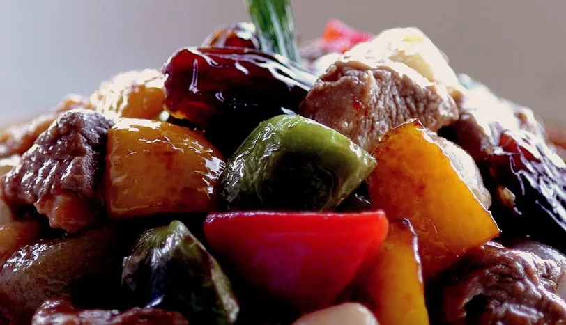 Patlıcan ve kerevizi soyup kuşbaşı şeklinde doğrayın. Renkli biber ve yeşil domatesleri de aynı şekilde doğrayın. Mısır yağı ve tereyağını bir tencereye alın. Kuşbaşı kuzu etini ekleyip, pembeleşinceye kadar soteleyin. Pembeleşen etleri, yağını süzerek tencereden alın. Aynı yağda arpacık soğanları pembeleştirin. Üzerine mısır unu ve biber salçasını ekleyip karıştırın. Üzerine ikiye bölünmüş hurmaları, sebzeleri ve suyu ekleyin. İlk kaynadığında karışımın üzerindeki köpüğü alın. Rendelenmiş zencefili ekleyin. Kısık ateşte 20-25 dakika pişirin. Ocaktan almadan önce yeşil domatesleri ekleyin. Bir taşım kaynadıktan sonra ocaktan alın. Sıcak olarak servis yapın.
