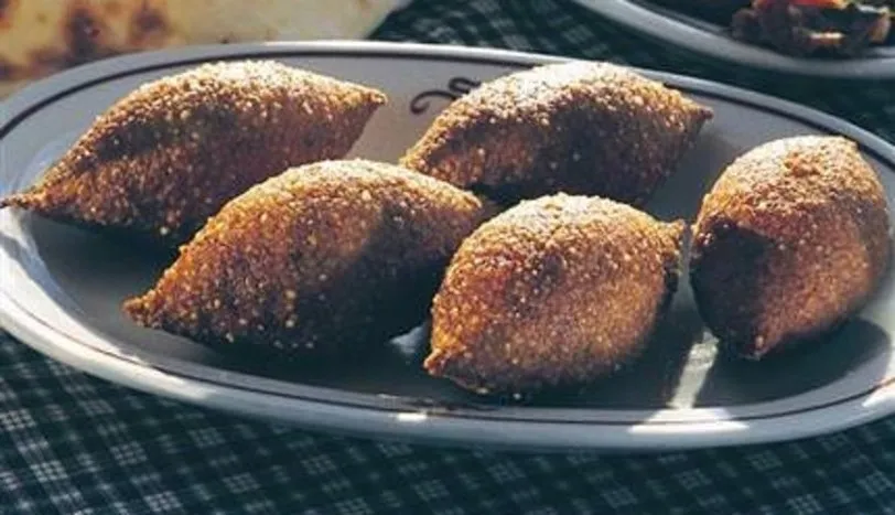 KIYMAYI soğan ile birlikte kavurun. Baharatları, fıstık ve cevizi ekleyip, 1-2 dakika daha kavurduktan sonra ocaktan alıp, soğutun. Bulguru 1 su bardağı suyla ıslatın. 15 dakika beklettikten sonra kıyma, yumurta, patates, tuz, 1 çorba kaşığı ıslatılmış pulbiber ilave ederek iyice yoğurup, hamur haline getirin. Hamurdan ceviz büyüklüğünde parçalar koparın ve ıslak elinizle içini oyarak açın. Bir çorba kaşığı iç malzemeyi koyup, köfteyi yumurta şeklinde kapatın. Kızgın yağda kızartıp, servis yapın.