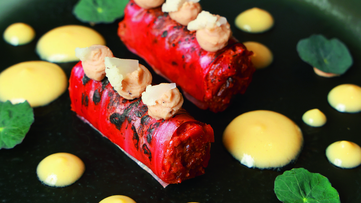Panko, miso, ve Antep fıstığına azar azar su ekleyerek püre kıvamına gelene kadar blender'da çekin. Bir gece beklettiğiniz sebze dilimlerini ızgaralayın ve küçük küpler halinde kesin. Sebze küplerini hazırladığını püre ile karıştırın ve dinlenmeye bırakın.