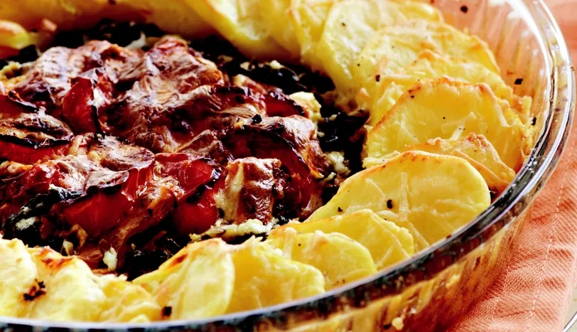 1 ISPANAĞI yıkayıp bir tencereye alın. Su ilave etmeden ve kapağı kapalı olarak 2 dakika haşlayın. Elinizle sıkıp irice doğrayın. Tuz ve karabiberle tatlandırın.2 Patatesleri soyup halka doğrayın. Tuzlu suda 2 dakika haşlayın. Soğuk sudan geçirip iyice süzün. Domatesleri soyup halka doğrayın. Dil peynirini dilimleyin.Orta boy yuvarlak bir fırın kabını yağlayın. Tepsinin ortasına domates ve dil peynirini yerleştirin. Etrafına ıspanak koyun. Patatesleri kabın dış kenarına balıksırtı döşeyin. Tuz, karabiber ve rendelenmiş kaşar peyniri serpin. Önceden ısıtılmış 200 derece fırında 35-40 dakika pişirin.