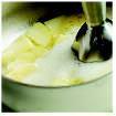 2. Çorba için soğan, patates ve biberiyeyi balık suyuyla birlikte bir sos tavasına koyun. Kaynama noktasına kadar ısıtın ve 15 dakika kısık ateşte pişirin. Ateşten alın ve yumuşayıncaya kadar Braun Multiquick 7 Kablosuz el blendırıyla blendırdan geçirin.