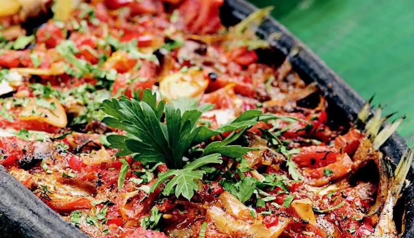 Öncelikle balıkları ayıklayıp , yıkayın ve bir kenara alın. Tereyağını bir tavaya alıp, eritin. İçine rendelenmiş soğan ve sarımsak, kıyılmış mantar, sivri ile kırmızı biber, maydanoz, dereotu, küp doğranmış domates katın. Tüm malzemeyi iyice kavurun. Soya sosu, karabiber ve pul biber ilave ettikten sonra ocağın altını kapatın. Mantarlı malzemenin yarısını güveç kabının dibine yayın. Üzerine balıkları dizin ve kalan malzemeyi boşaltın. En üste rendelenmiş kaşar peyniri serpin. Önceden ısıtılmış 200 derece fırında 20-25 dakika pişirin. Sıcak servis yapın.