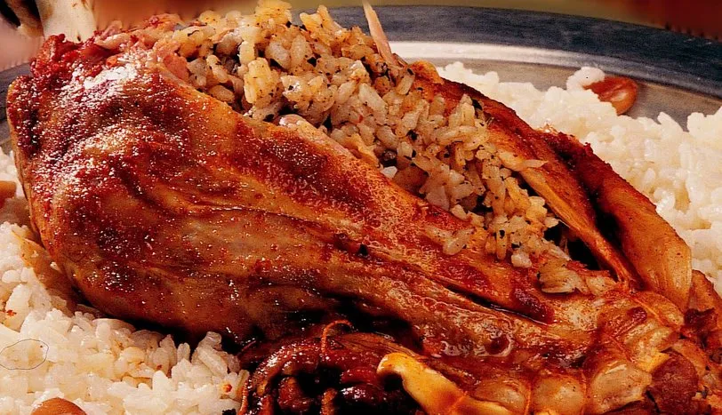 Öncelikle iç pilavı hazırlayın. Bunun için, tereyağını tencereye alıp eritin. Yıkanıp suyu süzülmüş pirinci, bademi, yenibahar ve tuzu ekleyin. 1-2 dakika kavurup, bir buçuk su bardağı su ekleyin. Tencerenin kapağını örtüp kısık ateşte pilav suyunu çekene kadar pişirin. Daha sonra tencereyi ocaktan alıp, pilavın üzerine ince kıyılmış maydanoz serpin. Kaburganın kol kısmı ile arasındaki boşluğa iç pilavı doldurup dikin. Buharlı tencerede ya da benmari usulü 6-8 saat pişirip servis yapın.