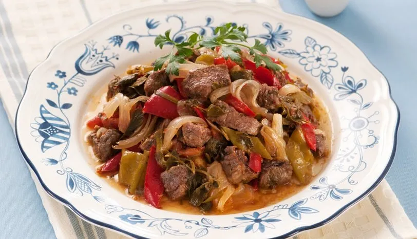 İri kıyılmış kırmızı biber, yarım ay biçiminde doğranmış soğan, verev doğranmış sivri biber, iri kıyılmış taze soğan ve dilimlenmiş domatesi bir kaseye alın. Eti pul biber, karabiber, kimyon, kekik ve tuzla karıştırıp, sebzeli harca katın. Kıyılmış maydanoz da ilave ettikten sonra yağı ekleyin ve karıştırın. Tepsi büyüklüğünde kestiğiniz pişirme kağıdını suya batırıp çıkarın ve suyunu sıkın. Tepsiye yayın. Etli harcın 1/3'ünü koyup dilediğiniz şekilde kapatın. Kalan etleri de aynı şekilde hazırlayın. Bıçakla bir-iki yerinden delikler açın. Önceden ısıtılmış 200 derece fırında 40-45 dakika pişirin.