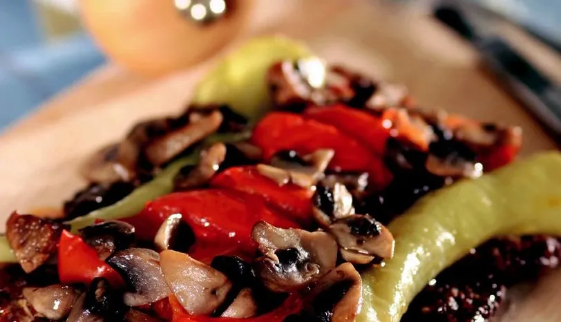 Kıyma ve sucuk baharatını derin bir kaseye alın. Dövülmüş sarmısağı ilave edip bütün malzemeyi iyice yoğurun. Daha sonra 24 saat dinlendirin. Kıymayı 6 eşit parçaya ayırın ve her bir parçadan 1 parmak kalınlığında köfteler hazırlayın. Köftelerin her birini birer yağlı kağıt parçasının üzerine yayın. Küp doğranmış mantarı köftelerin üzerine paylaştırın. Dilimlenmiş domates ve sivri biberleri yerleştirip köfteleri yağlı kağıtlara sarın. Önceden ısıtılmış 200 derece fırında 20 dakika pişirin. Patates kızartması veya püre ile birlikte servis yapın.