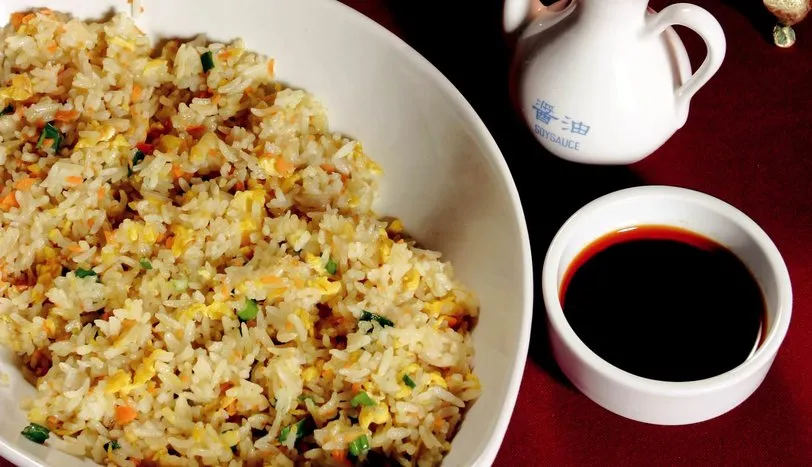 Pirinci yıkayıp sıcak tuzlu suda yarım saat bekletin. Suyunu süzmeden hafifçe haşlayın. Havuç ve soğanı incecik kıyın. Pirinci süzüp sebzelerle birlikte wok tavaya alın. Yüksek ateşte soteleyin. Yumurta sarısını ekleyip karıştırarak pişirin. Soya sosu ekleyip, sıcak olarak servis yapın.